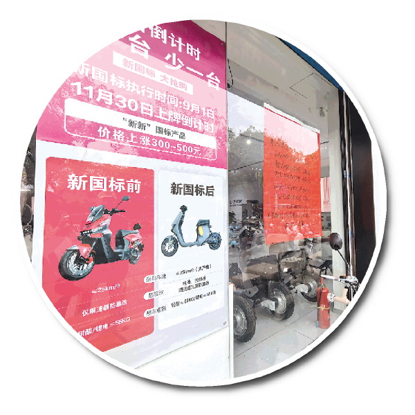 一家销售门店张贴了醒目的宣传海报,对新旧国标电动自行车进行对比。