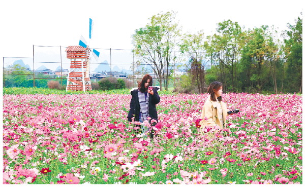 近日,桂林旅游学院校园内的格桑花盛放,色彩艳丽的格桑花海吸引了众人前来拍照打卡。