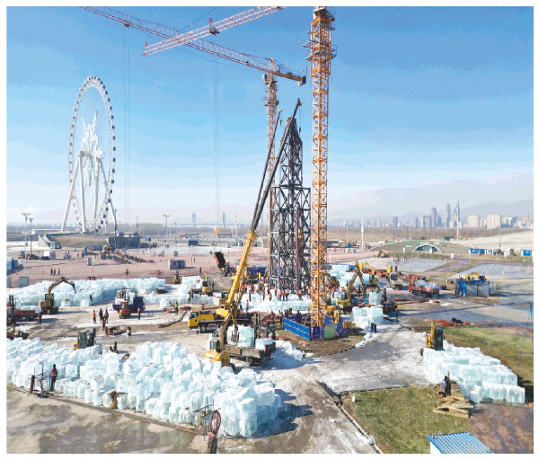 11月25日,随着20万立方米存冰陆续运抵园区,第二十七届哈尔滨冰雪大世界冰建工程正式启动。本届园区面积扩大至120万平方米,成为历史上规模最大的一届。