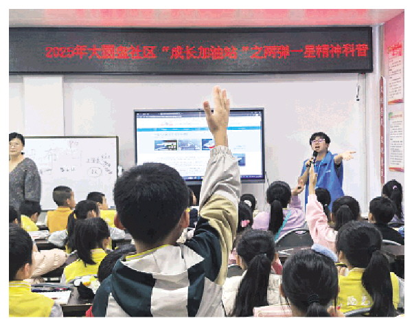 小朋友在科普活动上积极举手回答问题。(大圆盘社区供图)