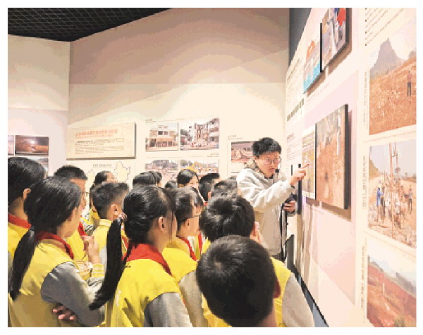 孩子们参观中国岩溶地质馆。 (大圆盘社区供图)