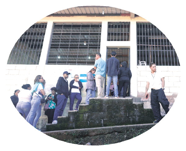 11月30日,在洪都拉斯特古西加尔巴一处投票站外,选民排队等待投票。