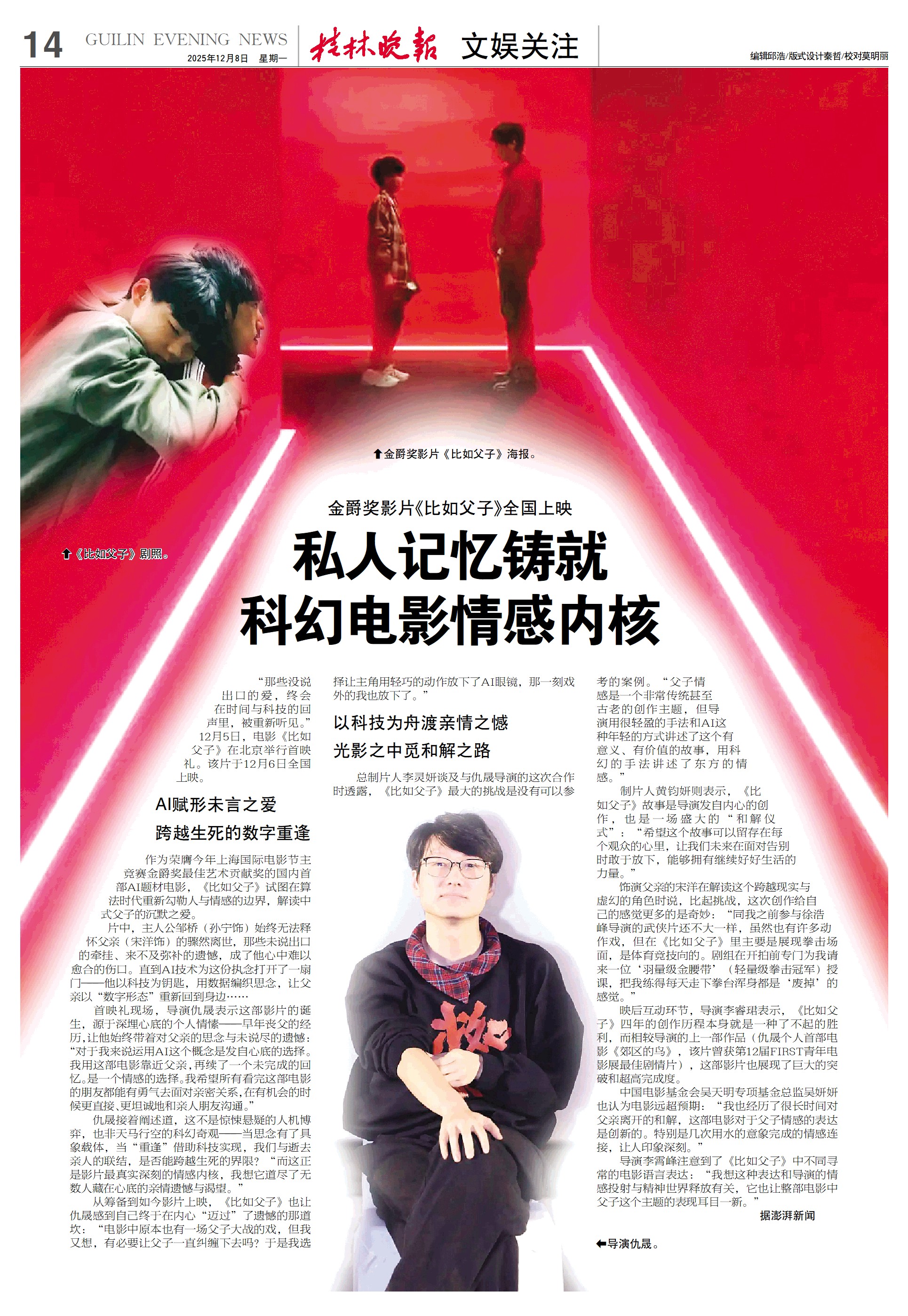 “那些没说出口的爱,终会在时间与科技的回声里,被重新听见。”12月5日,电影《比如父子》在北京举行首映礼。该片于12月6日全国上映。