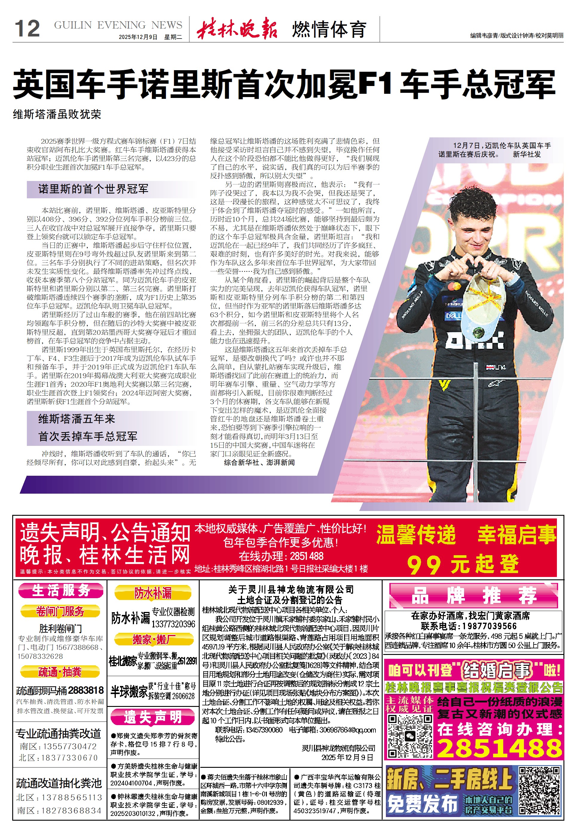 英国车手诺里斯首次加冕F1车手总冠军