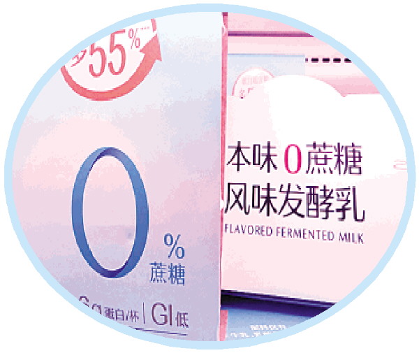 ↑近日,在北京某商超酸奶冷柜中,带有“0蔗糖”等标签的商品占据主流位置。(图源:新华网)