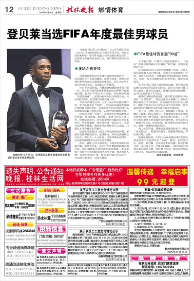 登贝莱当选FIFA年度最佳男球员