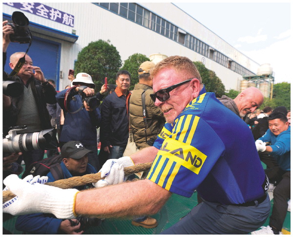 昨日,桂林国际线缆集团公司英才园厂区举办了一场“国际范”的拔河比赛。其下属子公司澳大利亚电线电缆股份有限公司的38名澳籍员工及家属组团来到桂林,在参观完生产车间后,与本地的员工代表队展开激烈的大力士拔河赛。 记者唐艳兰 摄