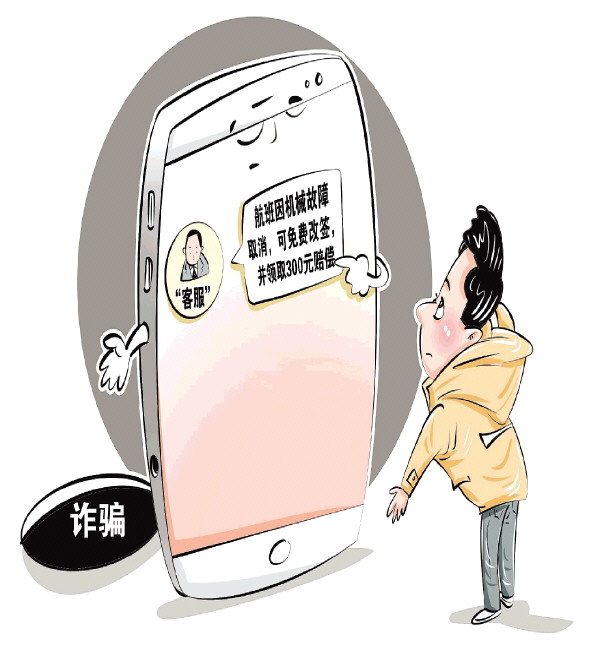 “航班因机械故障取消,可免费改签,并领取300元赔偿。”最近,不少旅客反映收到类似信息。警方提示:千万别乱了方寸,先搞清楚是不是“李鬼”再处理。