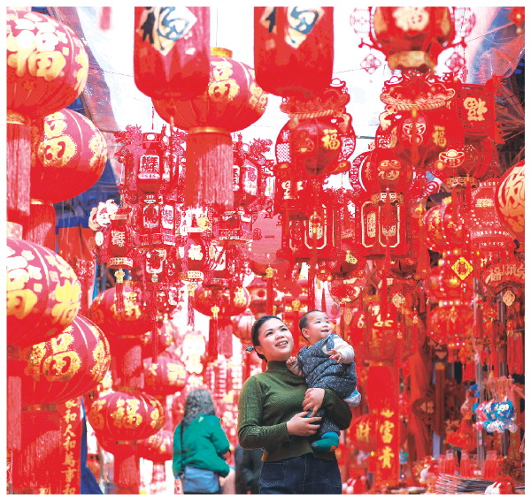 2月13日,家长带着孩子在贵州省都匀市文峰广场选购春节饰品。新春佳节临近,各地群众赶大集、备年货、迎春节。 新华社发