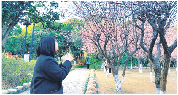 近日,七星公园内梅花竞放,暗香浮动。一名高中生正在梅树下专注写生,用画笔记录早春景致。 记者周子琪 摄