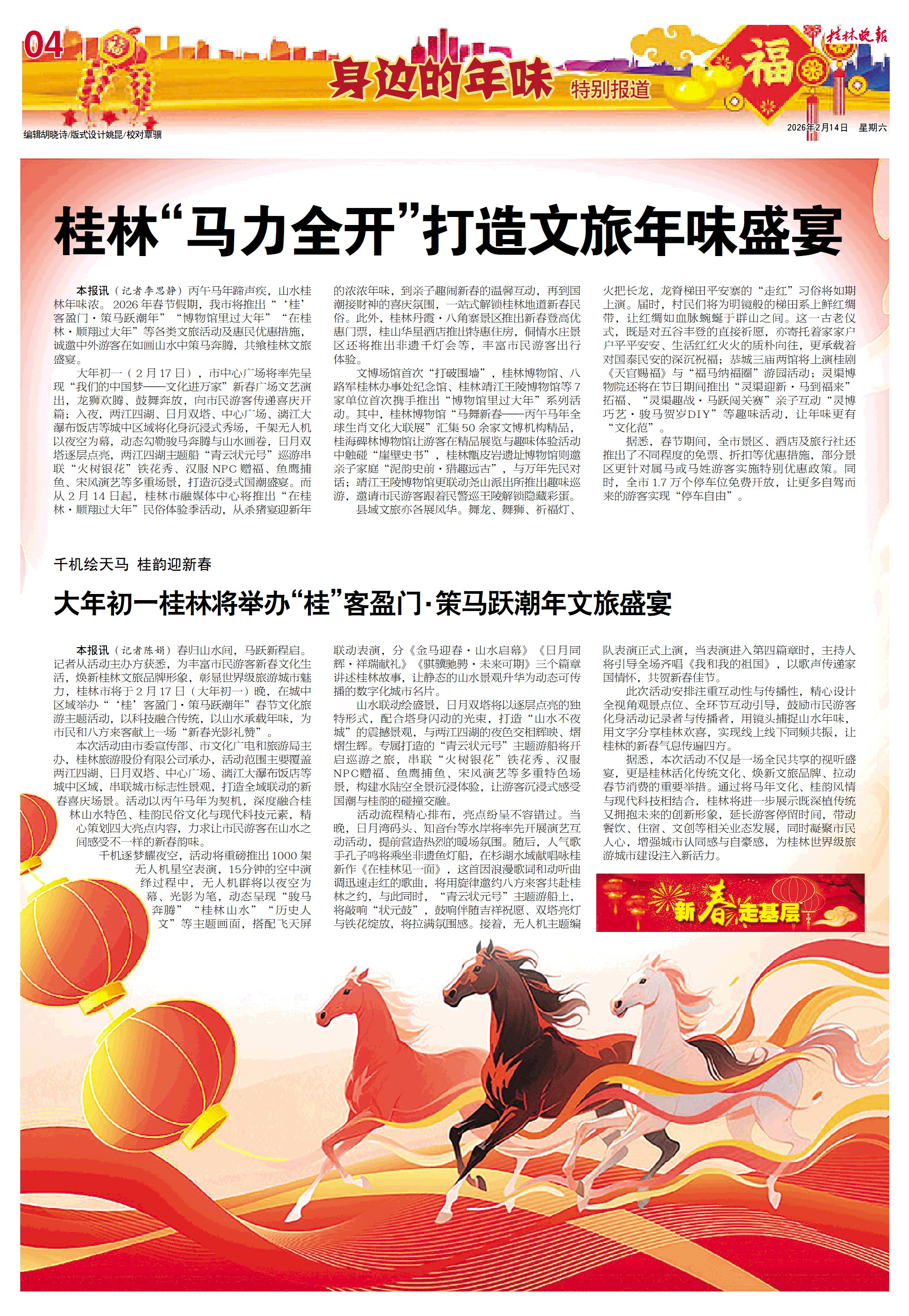 大年初一桂林将举办“桂”客盈门·策马跃潮年文旅盛宴
