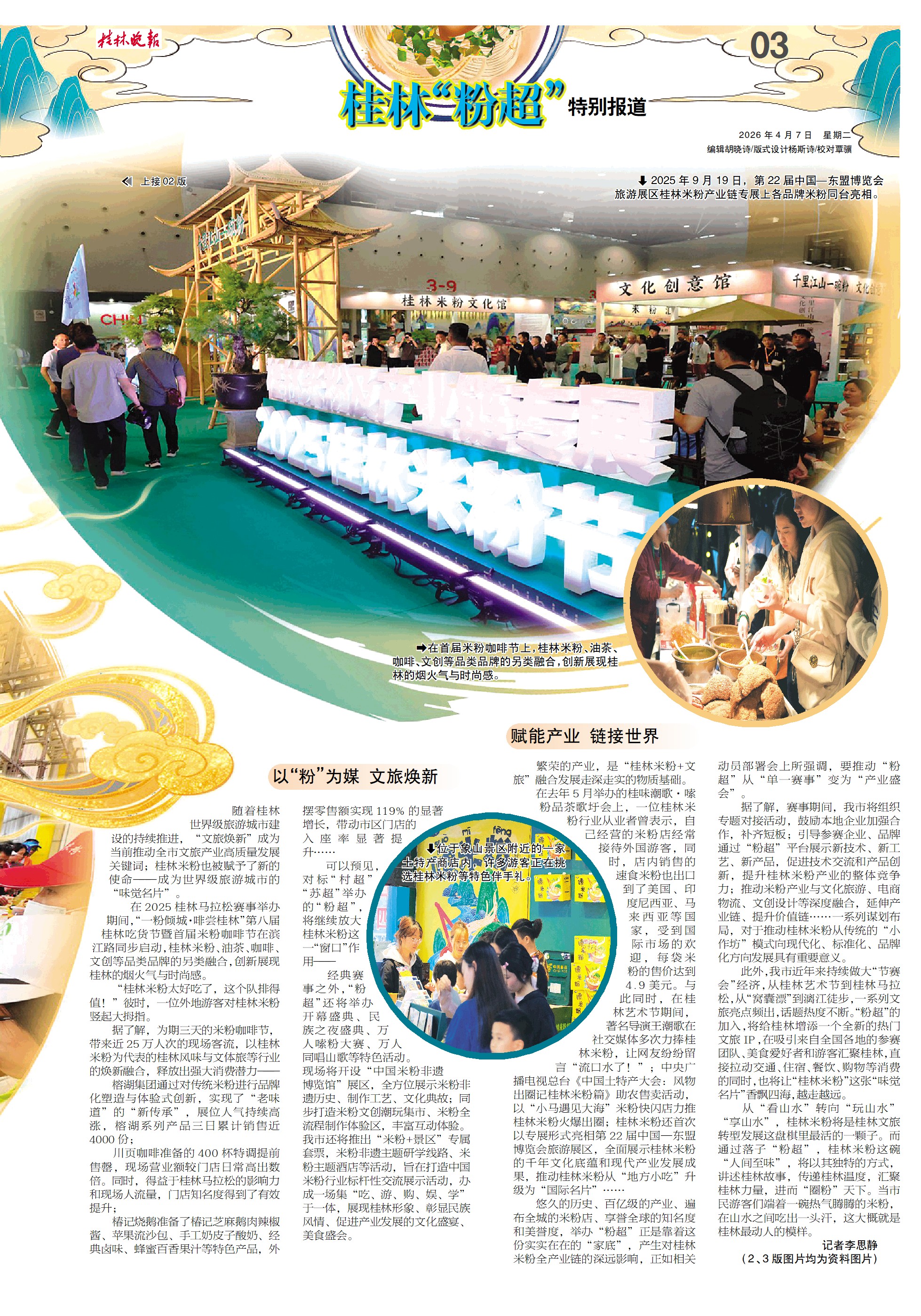 据了解,为期三天的米粉咖啡节,带来近25万人次的现场客流,以桂林米粉为代表的桂林风味与文体旅等行业的焕新融合,释放出强大消费潜力——