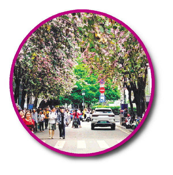 “宫粉紫荆的绽放,是桂林‘花化彩化’工程的生动缩影。”桂林市林业和园林局规划建设科科长李腾钊表示,近年来,桂林以创建国家生态园林城市为契机,持续推进城市绿化美化工作,打造了多条不同季节绽放的“花路”,除了春日的樱花、宫粉紫荆、紫玉兰,还有夏日的紫薇、象牙红、藤本月季,秋日的桂花、栾树,冬日的红花羊蹄甲、红槐、三角梅,实现了“四季有花、步步有景”。这些“花路”不仅扮靓了城市街道景观,提升了市民的幸福感和归属感,更吸引了大量群众前来观赏,为周边餐饮、住宿、零售等业态注入了新活力,推动“赏花流量”向“经济留量”转变。