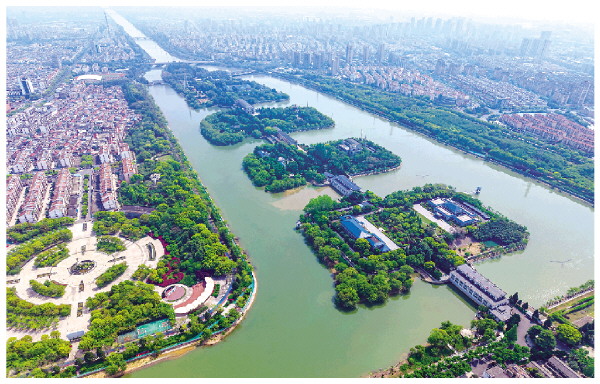 4月27日拍摄的位于江苏省扬州市江都区的南水北调东线源头江都水利枢纽(无人机照片)。